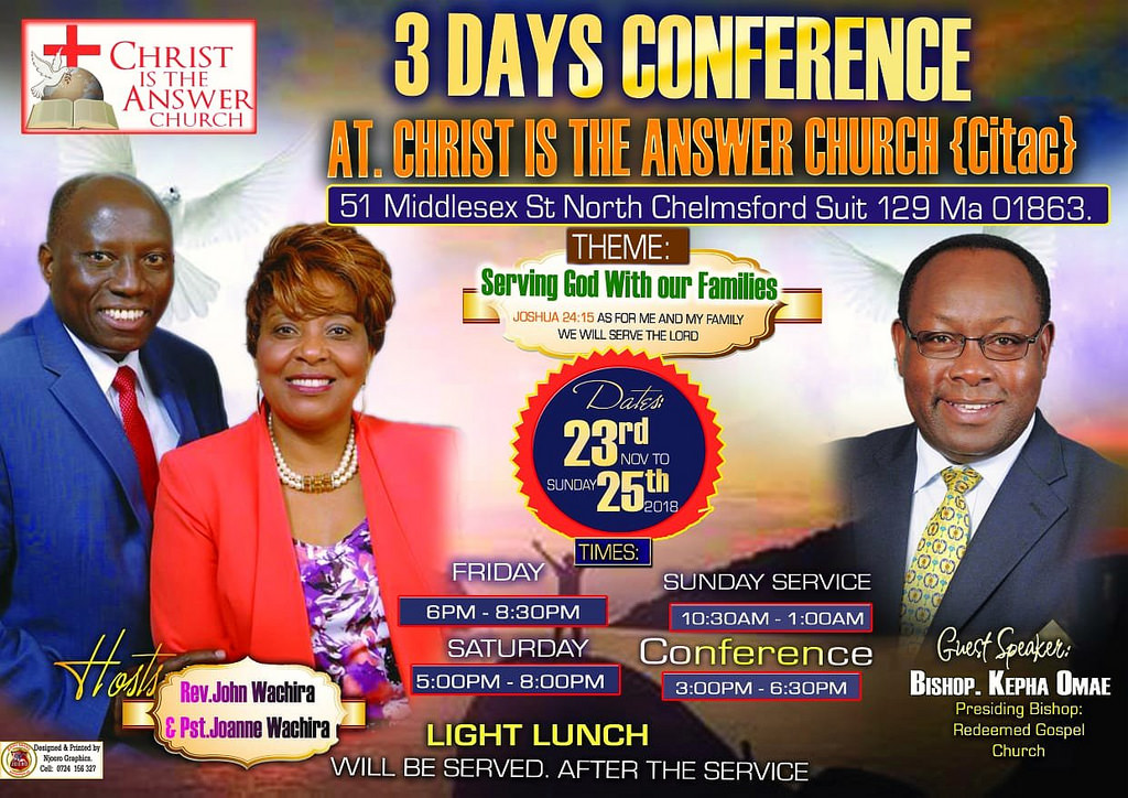 3 Day Conference”Serving God With our Families” @ Christ is the Answer(CITAC) November 23rd,24th & 25th 2018. All are Invited!