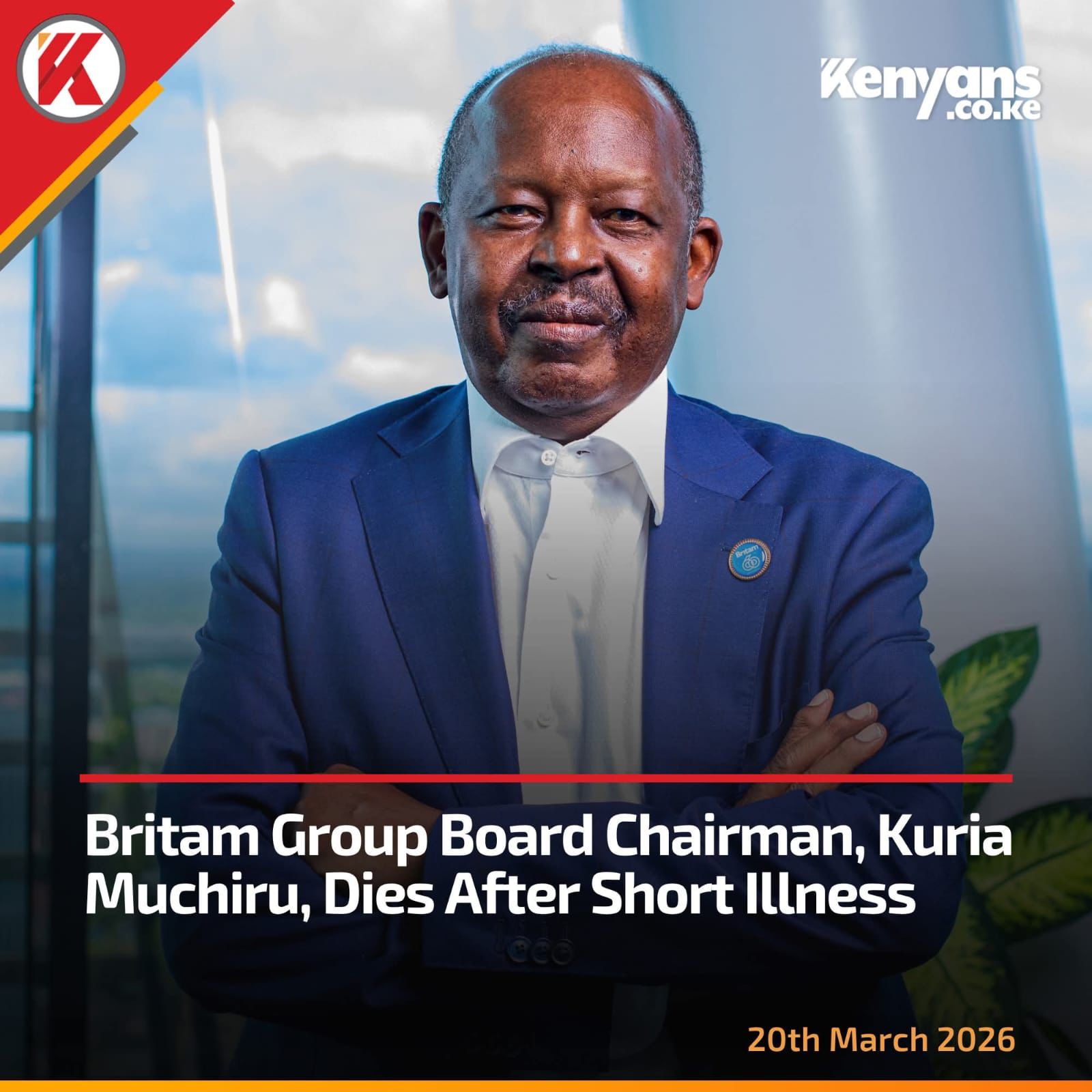 “The Britam Board of Directors and Management of Britam Holdings PLC is saddened to announce the passing away of our Group Board Chairman, Kuria Muchiru, who passed away today, March 19, 2026, after a short illness,” Britam Holdings PLC stated in a public notice.