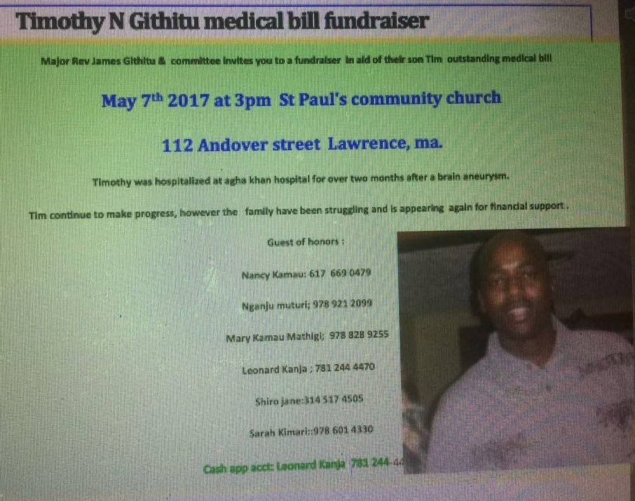 COMMUNITY APPEAL:MEDICAL FUNDRAISING FOR Timothy Ngugi Kimari ( DR. MAJOR JAMES GĪTHĪTU SON) WITH HUGE MEDICAL BILL AFTER SUFFERING FROM A BRAIN ANEURYSM