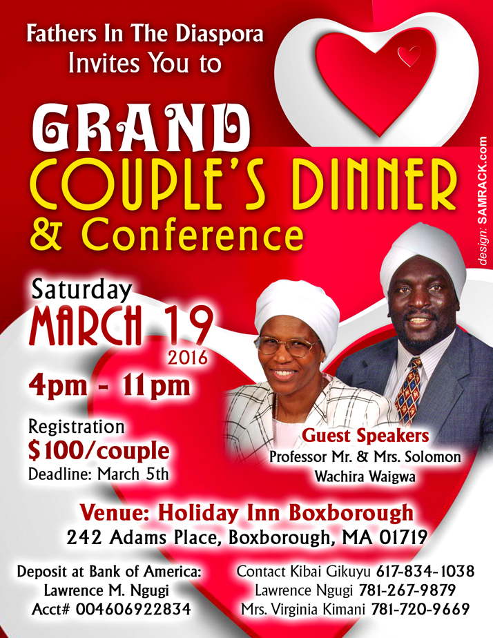 Fathers in the Diaspora Invite you to Grand Couple’s Dinner & Conference Saturday March 19th 2016 @4Pm to 11Pm