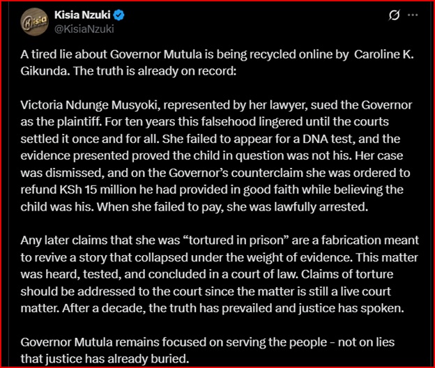 For years, the case lingered in court, casting a cloud over Governor Mutula’s reputation and fueling gossip across political and social circles.