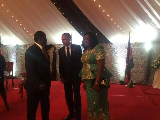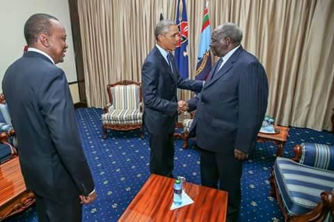 President Barack Obama has met with retired President Mwai Kibaki and former Prime Minister Raila Odinga at the Kenyan State House in Nairobi on Saturday night.