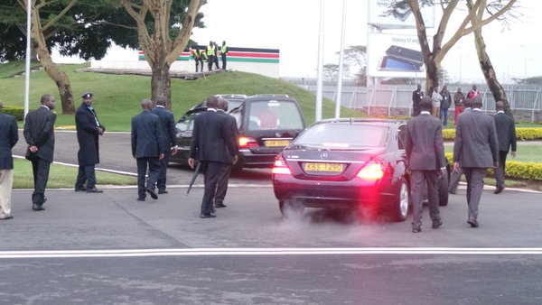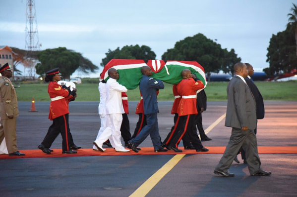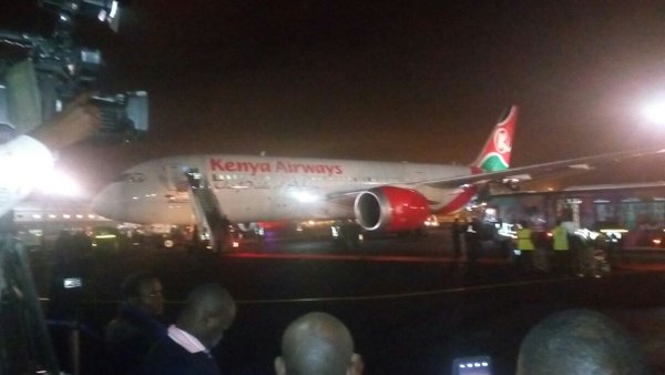 The Kenya Airways plane bearing Mama Lucy Kibaki’s remains has touched down at the Jomo Kenyatta International Airport. Former president Mwai Kibaki was aboard the plane which touched down early Sunday morning. President Uhuru Kenyatta was at the airport to receive the remains accompanied by the First Lady Margaret Kenyatta and a host of national leaders.