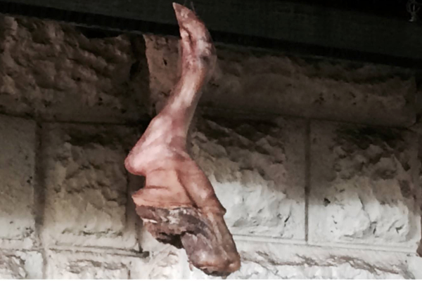 which was closed down on Tuesday, had dog legs hanging from beams in its kitchen.