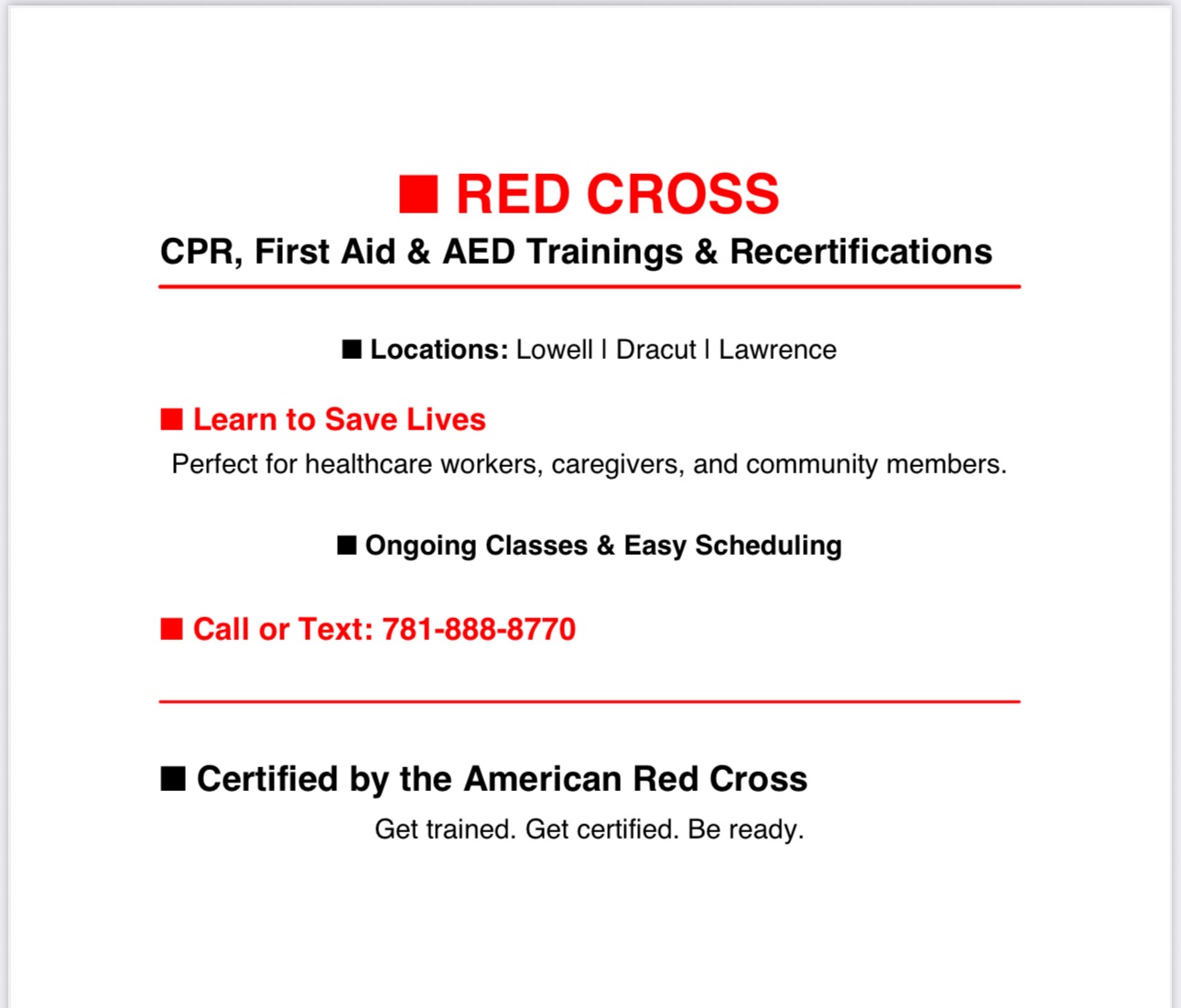 🔴 Certified by the American Red Cross – Get trained, get certified, be ready!