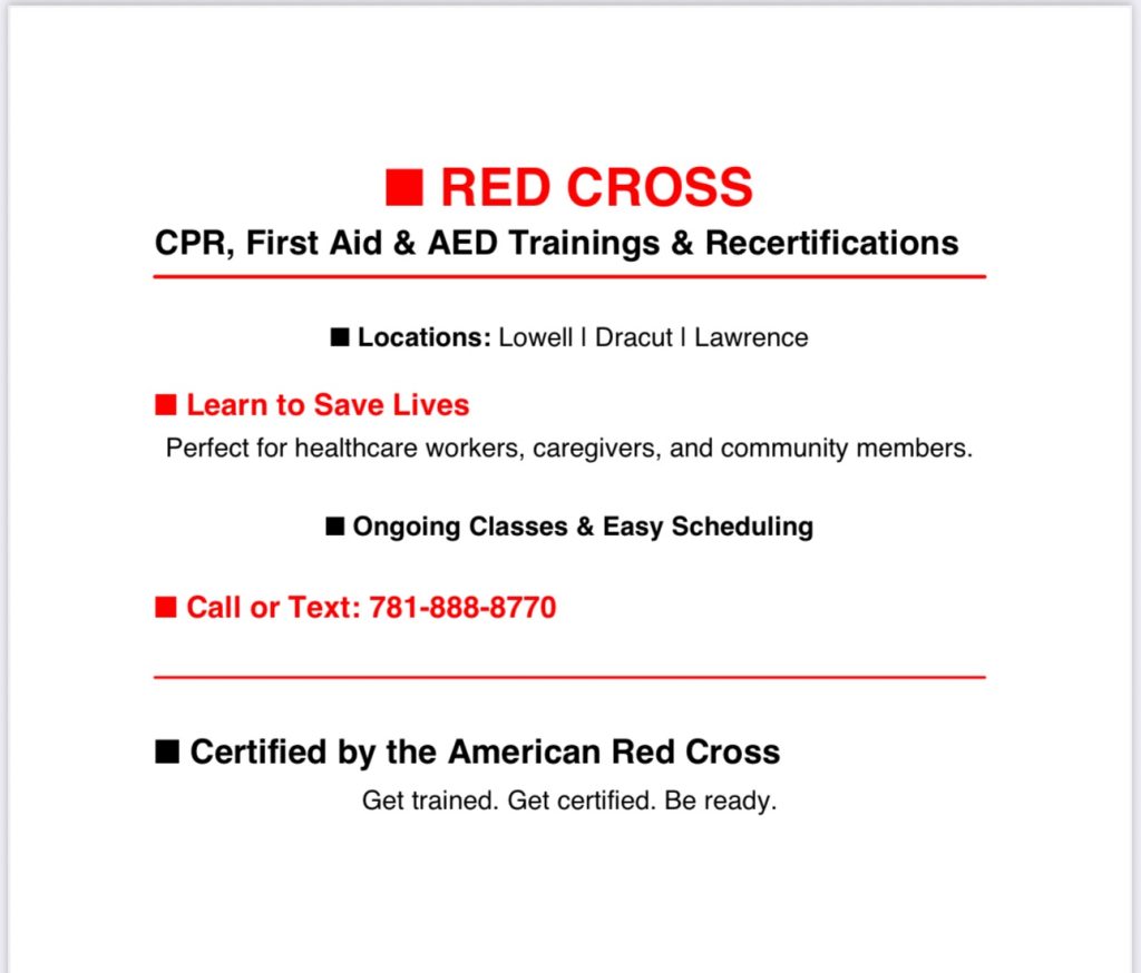 “Red Cross CPR and First Aid Training Now Available in Lowell, Dracut & Lawrence”
