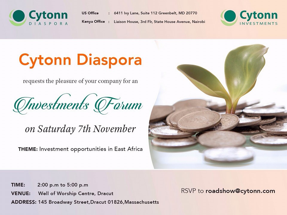 Cytonn/Boston Diaspora Investment Forum Sat 7th 2015 2Pm to 5Pm @ Well of Worship Center,145 Broadway Road,Dracut,MA