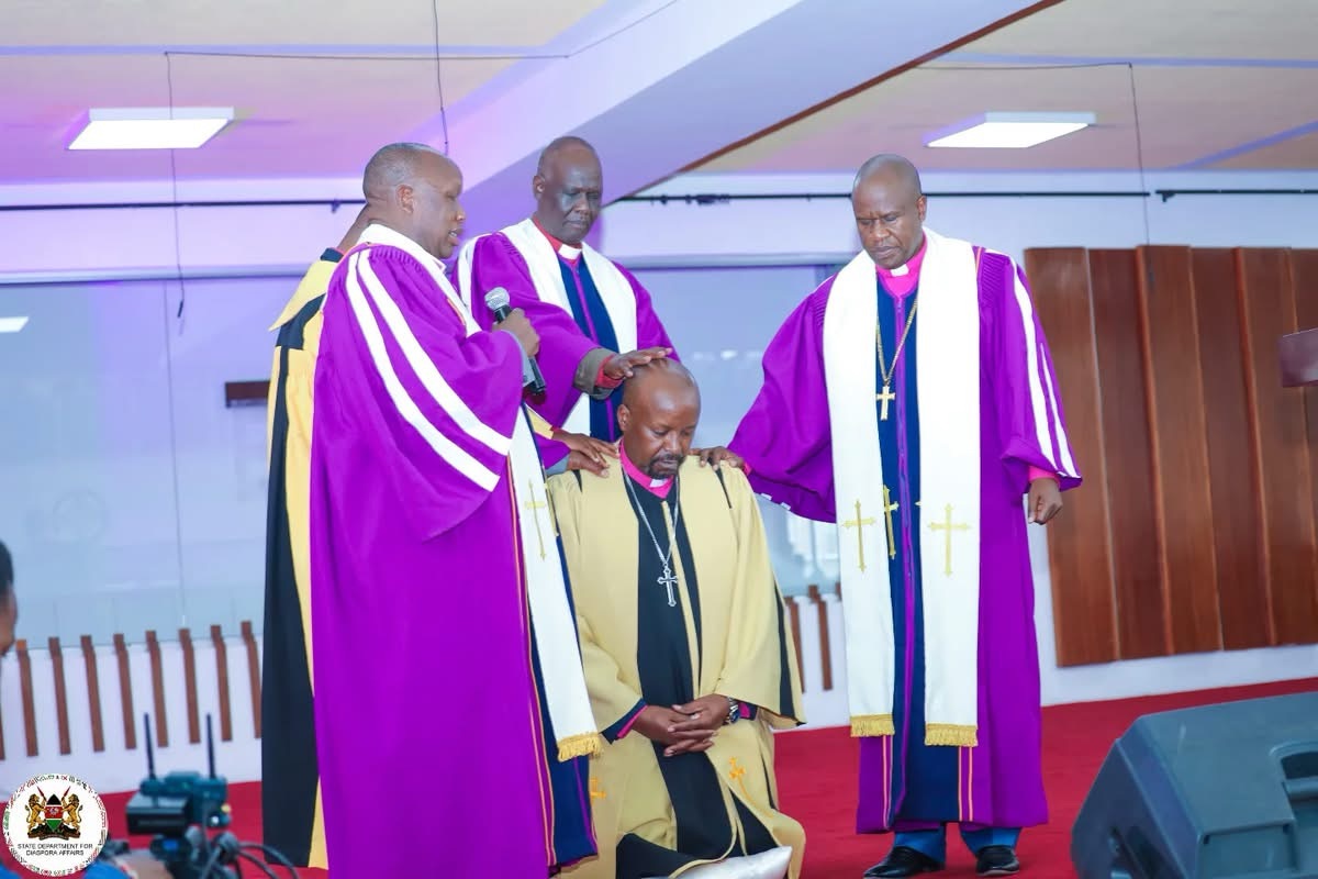 Diaspora Affairs PS, Ms. Roselyne Njogu today witnessed the installation of Rev. Gideon Ndirangu Robi from Atlanta, Georgia, as the new Assistant Bishop for the Diaspora Area at the AIC Milimani Church, Nairobi.