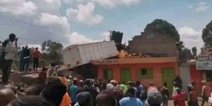 Several Feared Dead as Lorry Crashes on Top of Building in Mutarakwa, Kiambu