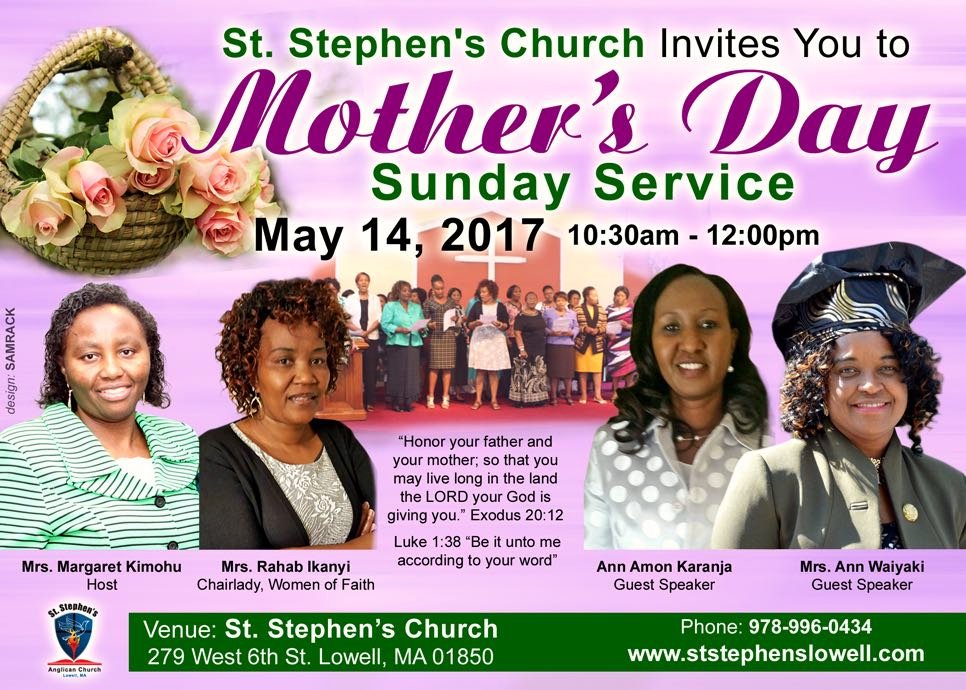 St Stephen’s Church Lowell invites you to Mother’s Day Sunday Service May 14th,2017 Time 10:30-12:00