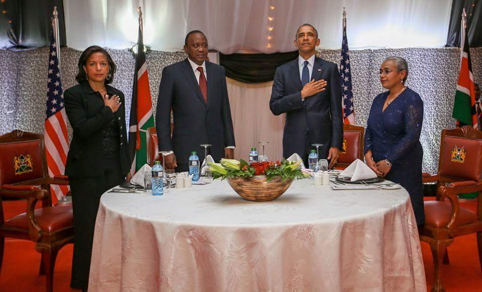 Saturday’s dinner was hosted by Kenyatta at the State House. Security was tight for the event, whichfollowed a series of meetings earlier in the day to promote increased investment in agriculture, infrastructure and energy production.
